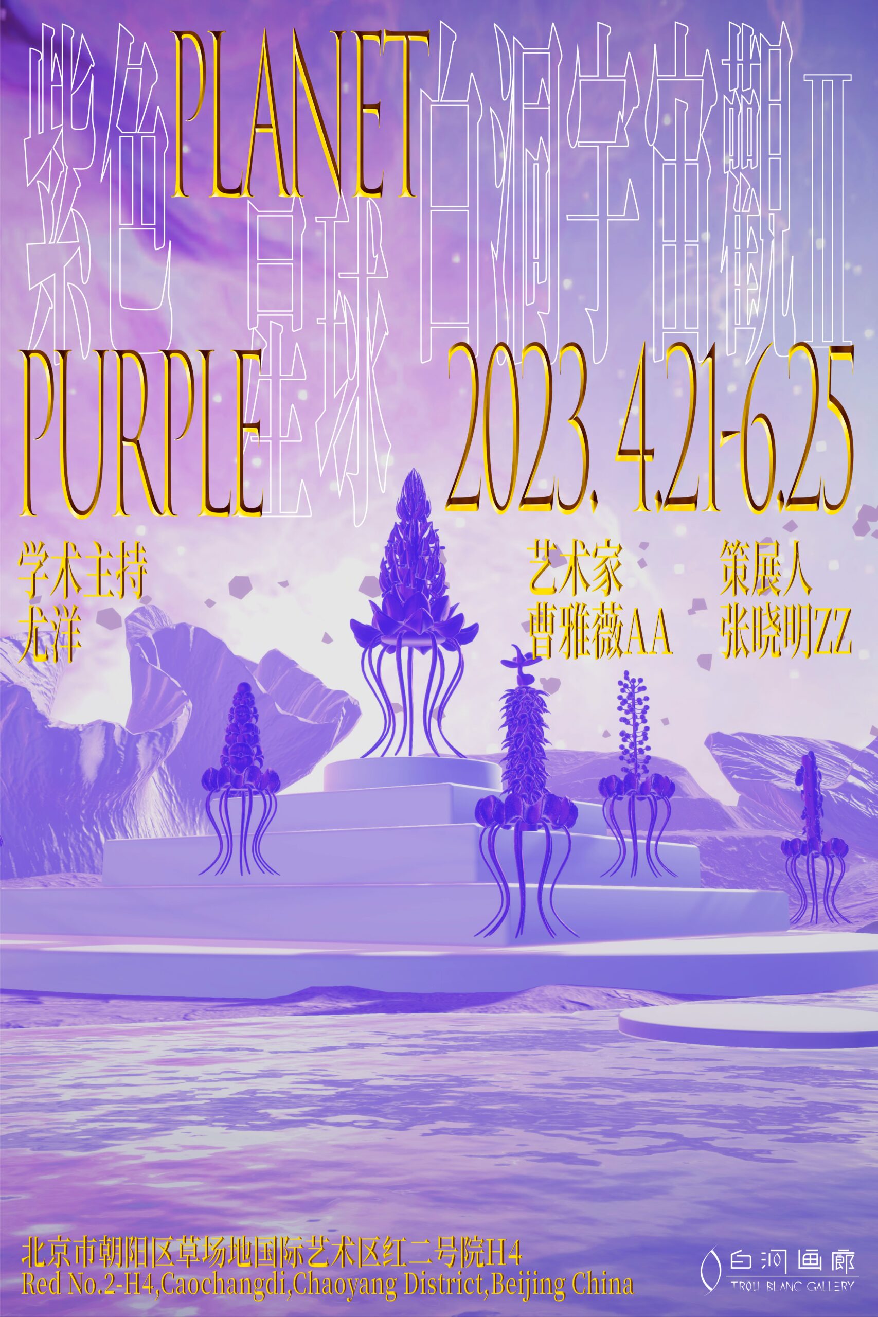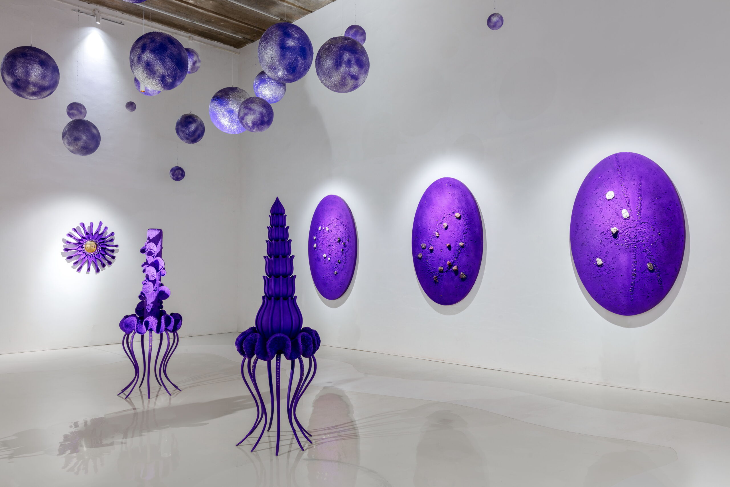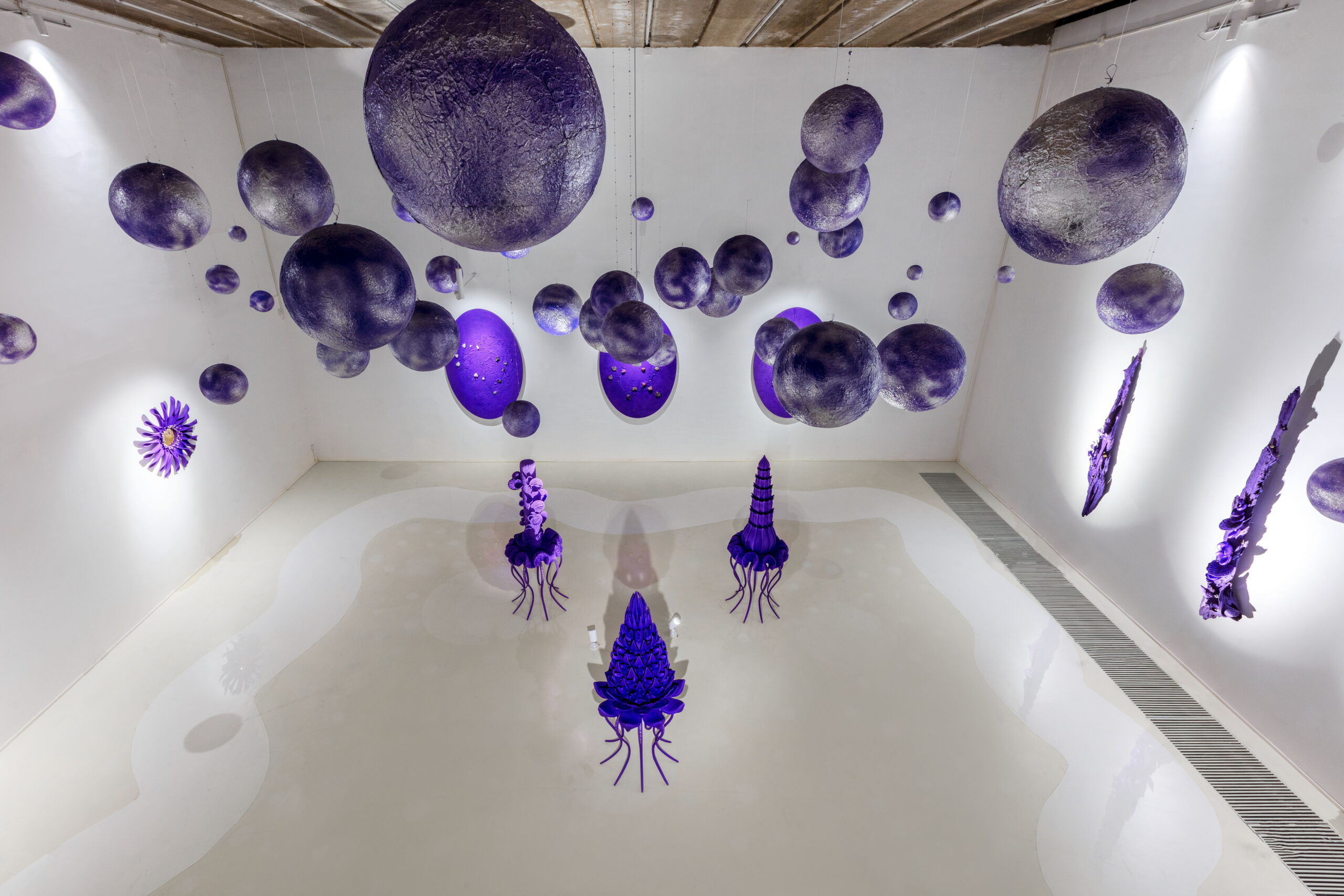 “紫色星球”将展出艺术家虚拟与现实结合的创作成果, 围绕 “共生”、 “生长”、 “寻宝精灵”、 “九鼎”、 “珍宝山”、 ”勋章“、“星座”和“明镜台”八个系列全面展开,涵盖雕塑与装置、沉浸式VR数字世界等作品。此次展览将成为“紫色星球”的创世篇,也是AA所构建的美学、哲学、诗歌和文学的浩瀚宇宙的序曲。让我们面对虚空闭上眼睛,1,2,3,请睁开眼睛,让我们一起步入奇幻的紫色星球!