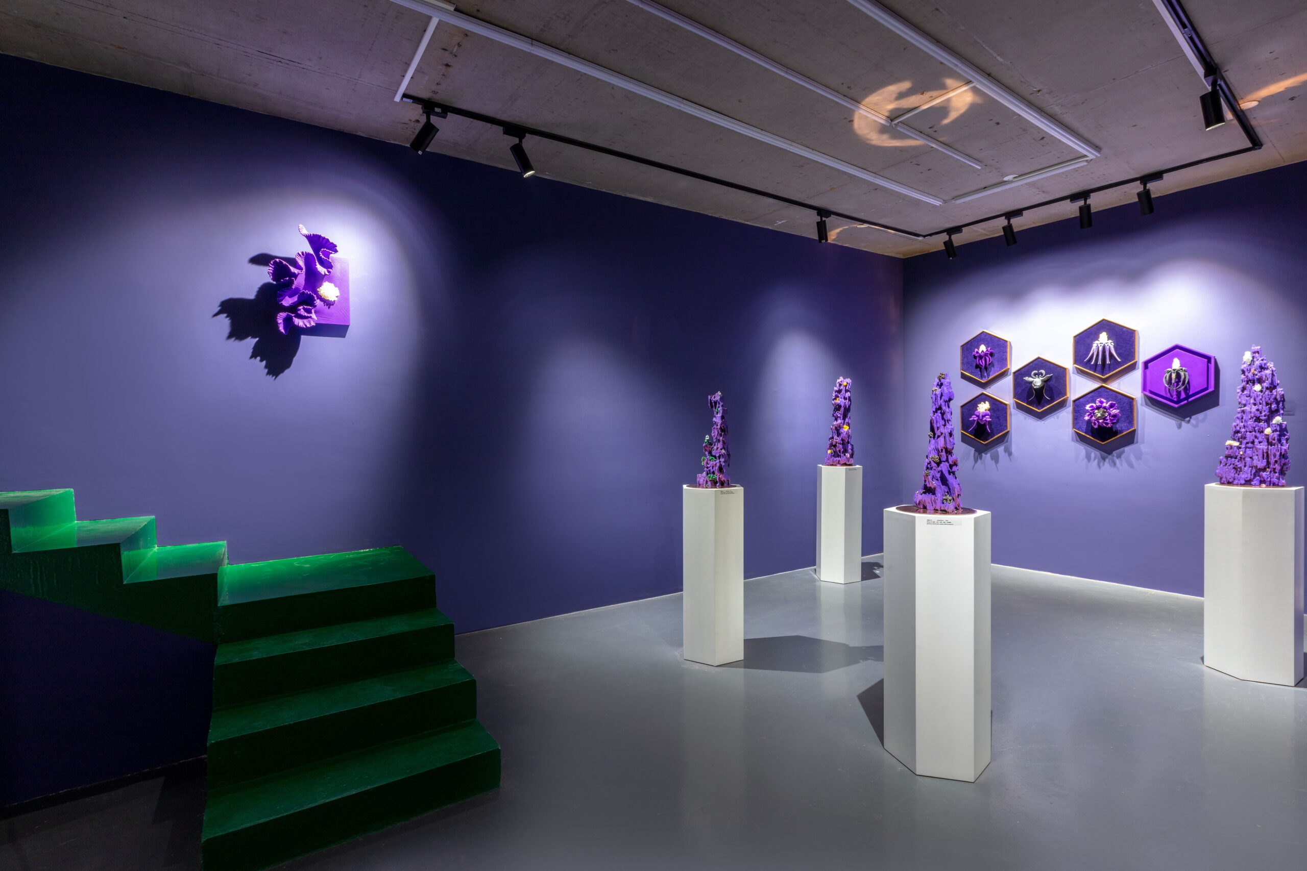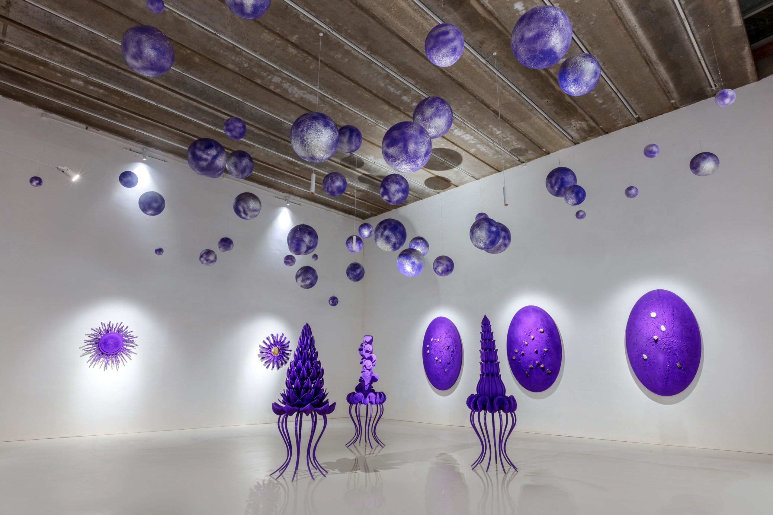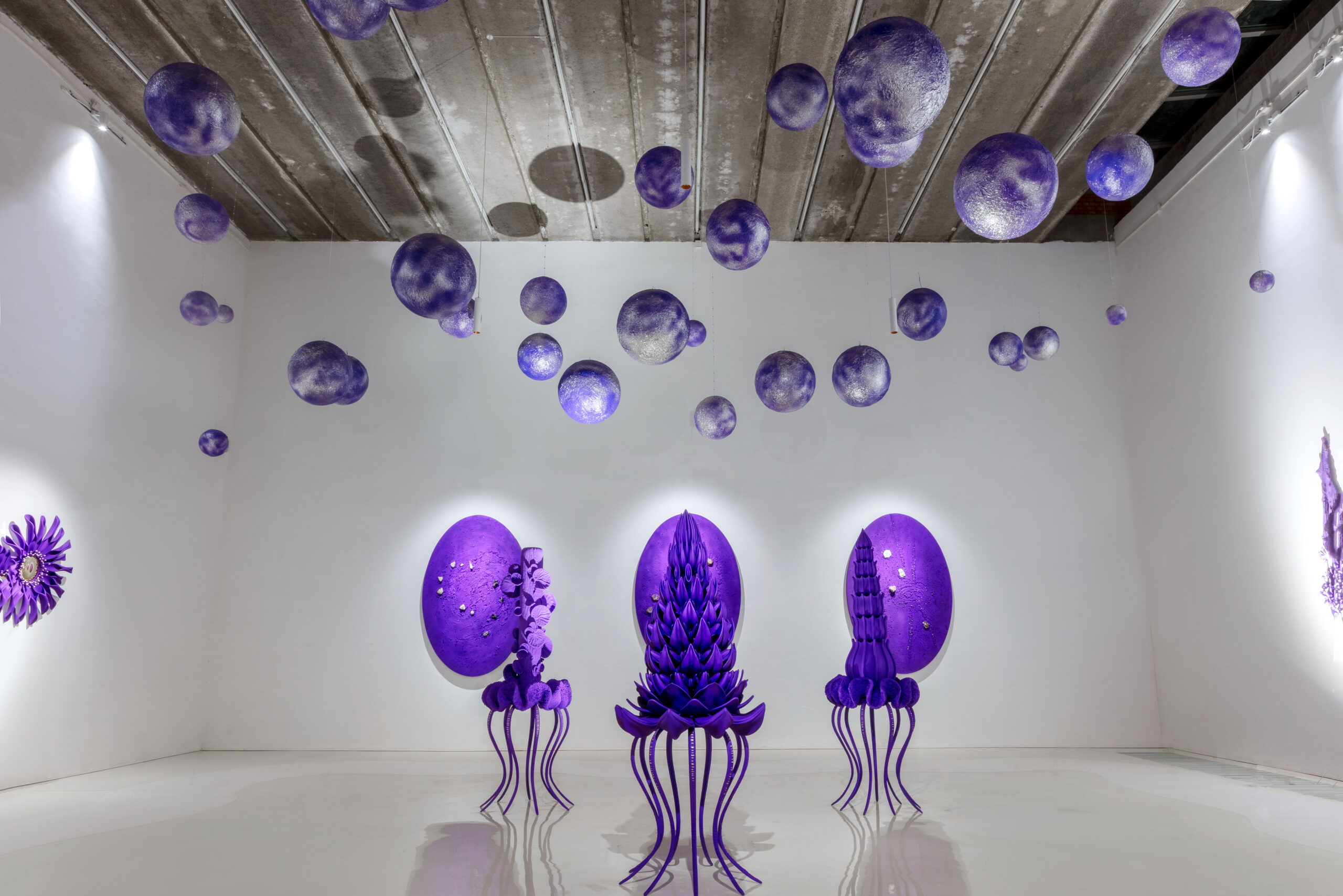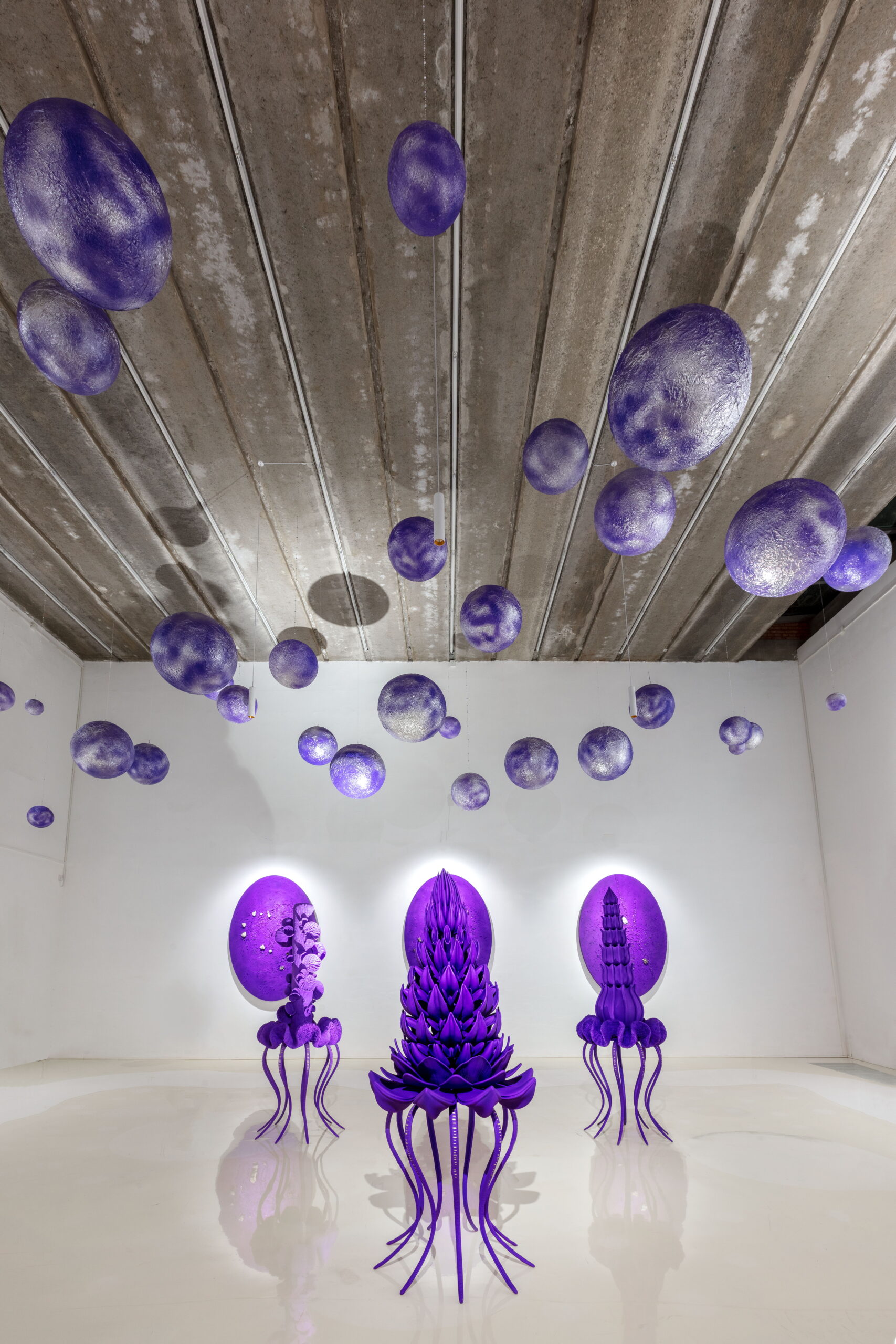 “紫色星球”将展出艺术家虚拟与现实结合的创作成果, 围绕 “共生”、 “生长”、 “寻宝精灵”、 “九鼎”、 “珍宝山”、 ”勋章“、“星座”和“明镜台”八个系列全面展开,涵盖雕塑与装置、沉浸式VR数字世界等作品。此次展览将成为“紫色星球”的创世篇,也是AA所构建的美学、哲学、诗歌和文学的浩瀚宇宙的序曲。让我们面对虚空闭上眼睛,1,2,3,请睁开眼睛,让我们一起步入奇幻的紫色星球!