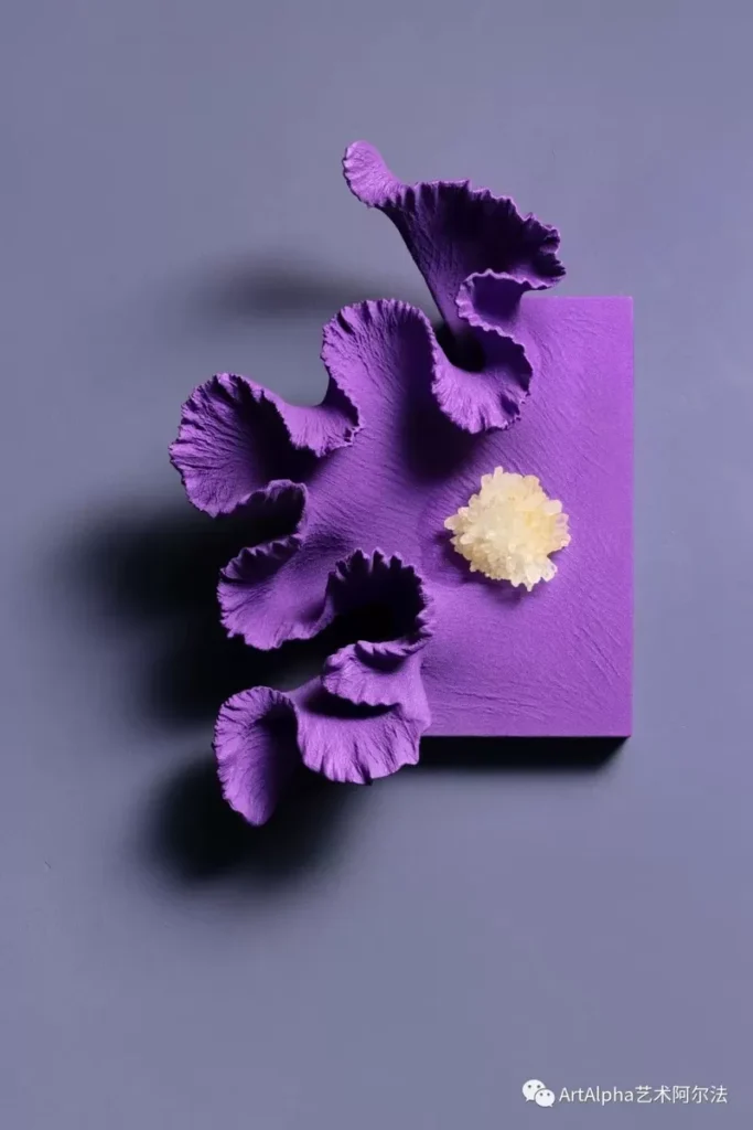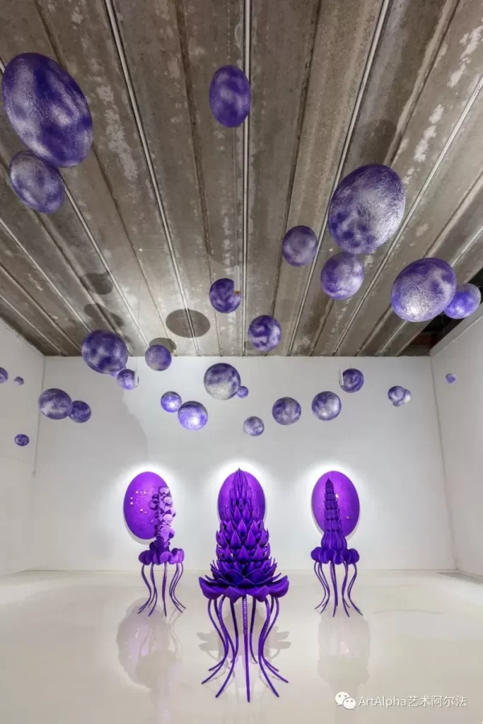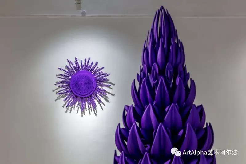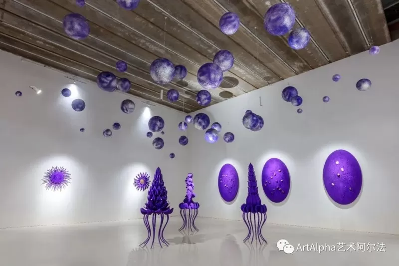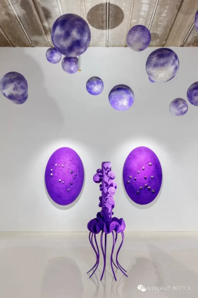 曹雅薇将她对紫色的理解用大自然中的取材赋型,将自我的精神世界投射到极具想象的作品中,创造了乌托邦式的“紫色星球”。