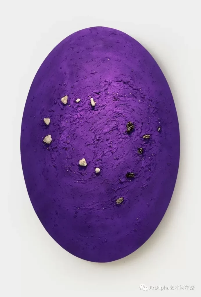 她国画的基因在此时崛起了,最终,她找到了一种矿物原料,出来的效果正是她想要的紫色。这种紫色深邃而神秘,拥有细密的质感,以此为基础,曹雅薇进行的艺术探索既壮观又细腻,强调自然与人工,抽象与现实之间的相交点。