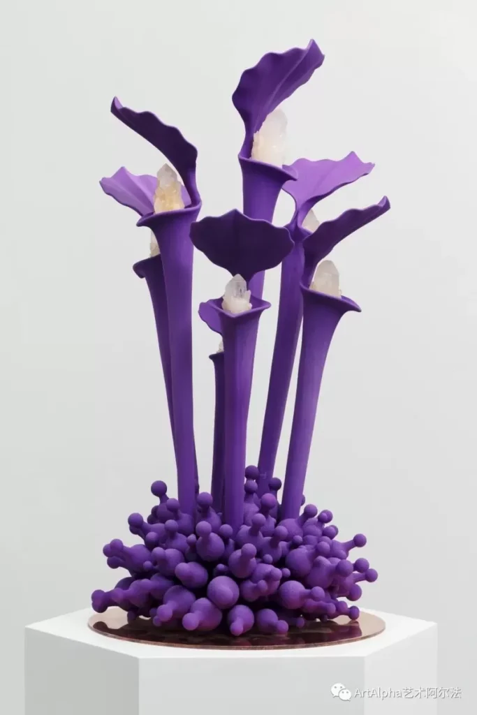 AA 以大自然美丽而神奇的生物为灵感来源,构建了具有平等& 共生宇宙观的紫色星球,寄托着希望和未来。AA 的创作与元宇宙时代不谋而合,她用天然矿晶、木材、标志性紫色等结合 3D 打印创造了辨识度极高的艺术作品的同时,也用 VR、AR 等技术创建了一个元宇宙紫色星球。AA 代表性的作品有共生系列、生长系列、九鼎系列、珍宝山系列等,她的作品纯粹而美好,是元宇宙时代虚拟与现实结合、科技与艺术结合的先锋艺术家。
