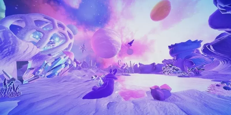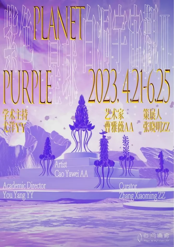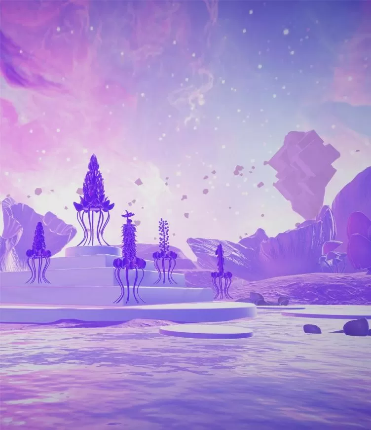 曹雅薇敏锐地捕捉到数字技术与艺术相结合的机遇,并通过自己的创作,为观众打开了一扇通向奇幻宇宙的大门。紫色星球元宇宙2023一共有6个场景(此次展览展出了其中两个场景),不同的星球承载了不一样的使命,给观者带来不同的沉浸式感受,有的梦幻、有的疗愈、有的让人心生喜悦。