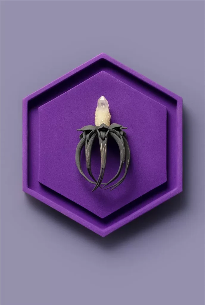 曹雅薇:我的所有创作灵感都来自大自然,不管是作品的形态还是材料。我本科毕业于中国地质大学材料科学与工程专业,在中国地质大学学习时,学校博物馆中可以看到珠宝和矿物原石,很多时候我们只关注珠宝的美,不会注意制作珠宝的原石,但在我眼里这些原石同样非常的美,那是大自然给我们的艺术作品。