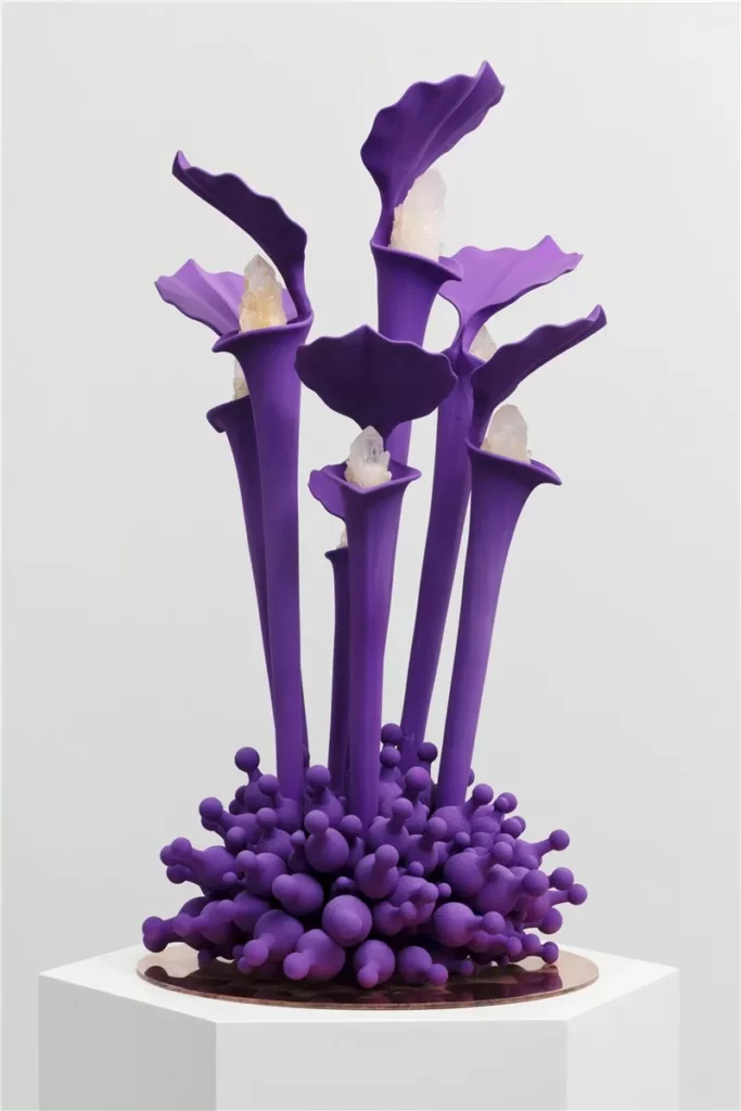 AA以大自然美丽而神奇的生物为灵感来源,构建了具有平等&共生宇宙观的紫色星球,寄托着希望和未来。AA的创作与元宇宙时代不谋而合,她用天然矿晶、木材、标志性紫色等结合3D打印创造了辨识度极高的艺术作品的同时,也用VR、AR等技术创建了一个元宇宙紫色星球。AA代表性的作品有共生系列、生长系列、九鼎系列、珍宝山、勋章、星座系列等,她的作品纯粹而美好,是元宇宙时代虚拟与现实结合、科技与艺术结合的先锋艺术家。
